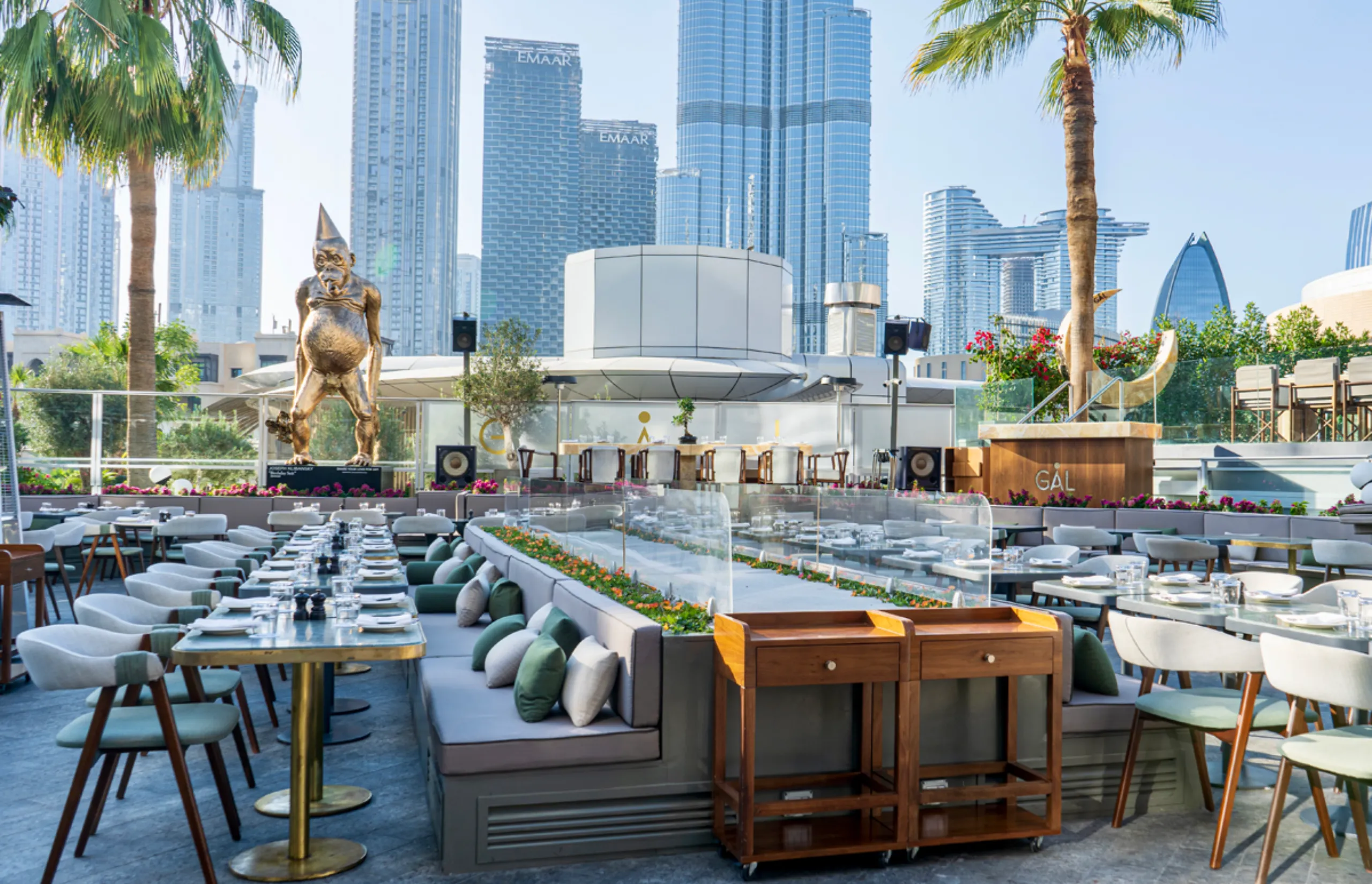 Mornings begin with lavish spreads, while evenings unfold with immersive live cooking, curated experiences, and refined takes on regional classics. Inside, rich silk drapes, mashrabiya screens, and desert-hued tones evoke a sense of regal warmth. Outside, the open-air terrace offers uninterrupted views of the Burj Khalifa and Dubai Fountain, an extraordinary backdrop for both intimate occasions and grand gatherings.
